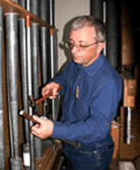 Will remains on call at B Rule and Company where, over the years, he has participated in all stages of organ design and construction from assisting in the heavy lifting of organ removals and installations, to pipe, bellows, and windchest repair, to providing designs for historically informed casework, to the fine detail of reproducing intricate, Victorian era polychroming on façade pipes.